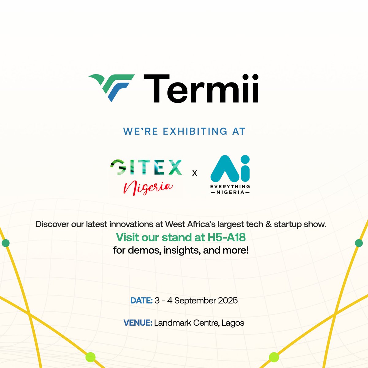 @termii_network We’re bringing innovation to #GITEXNigeria Catch Termii at Stand H5-A18 for live demos, insights & conversations shaping the future of customer communication in Africa. 🗓️ 3–4 Sept 📍 Landmark Centre, Lagos #To/ImUdbTlUHN